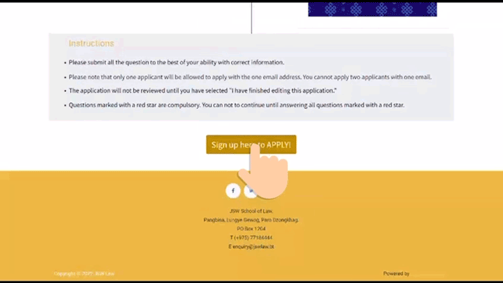 To apply to JSW Law, it is mandatory that you have a valid Email Address. If you do not have an email address, please sign up for one at